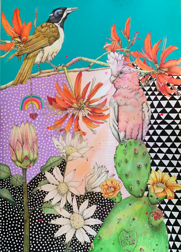 Medium: Watercolour, acrylic, ink and coloured pencil on paper