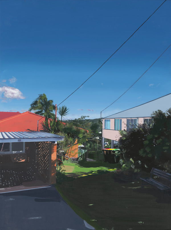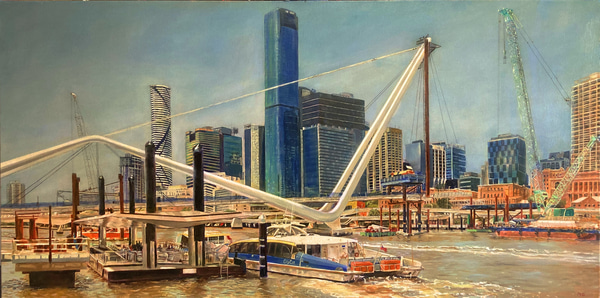 The piece 'The environmental polarity of a local creek' is an exquisitely rendered painting that tells a powerful time-based story by focusing on a small and often overlooked natural setting, the simple creek. It captures the friction of two landscapes, the urban and the natural, coming in contact and questions the benefits of relentless progress. All the artist's skills are at their peak in this artwork, and it is a deserving winner of the 2023 Landscape Prize.